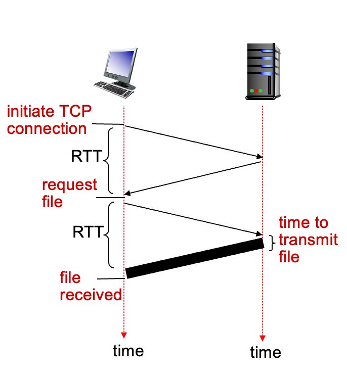 HTTP 1.0 요청을 보내기 위해서는 TCP 연결이 필요합니다. TCP는 신뢰성이 높은 연결 지향 프로토콜이므로, 연결을 설정하는 데에도 RTT가 발생합니다.