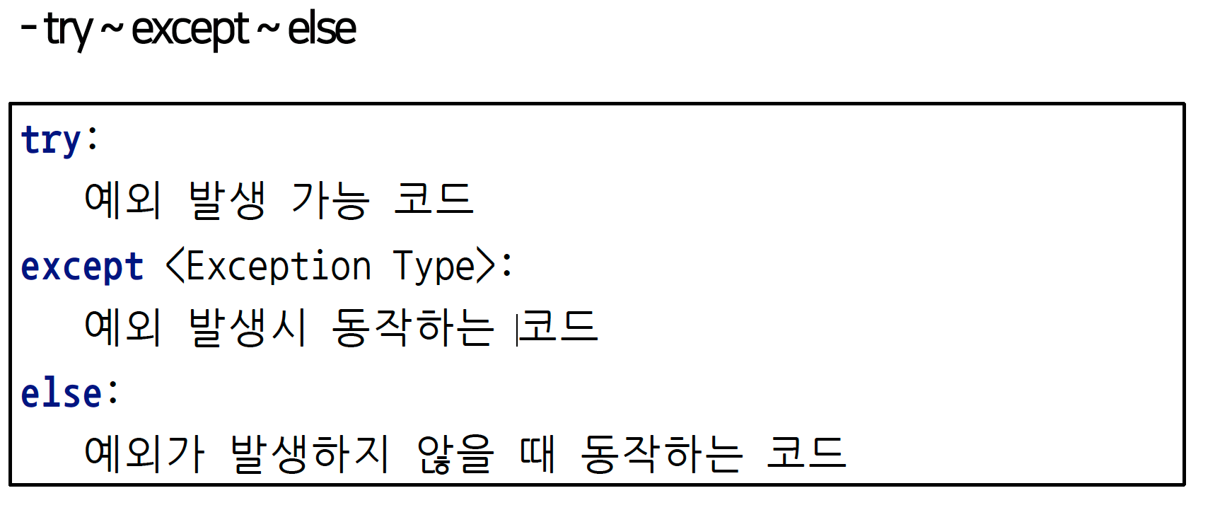 try는 except 상황을 제외할 때 하위의 코드를 실행시킨다.
