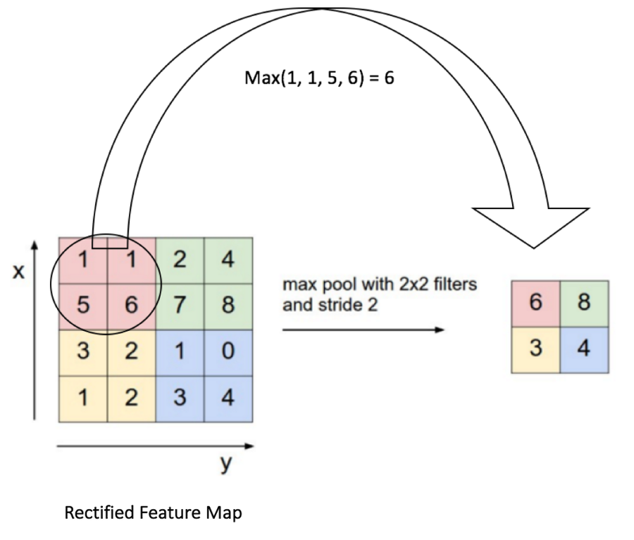- Pooling Layer: Pooling Layer는 이미지를 다운샘플링하는 데 사용된다. 일반적으로 Max Pooling이 가장 많이 사용된다. Max Pooling은 특정 영역 내에서 가장 큰 값을 선택하여 다음 계층으로 전달합니다. 이를 통해 이미지 크기를 줄이고, 계산 비용을 줄이면서 이미지의 중요한 정보를 보존한다.