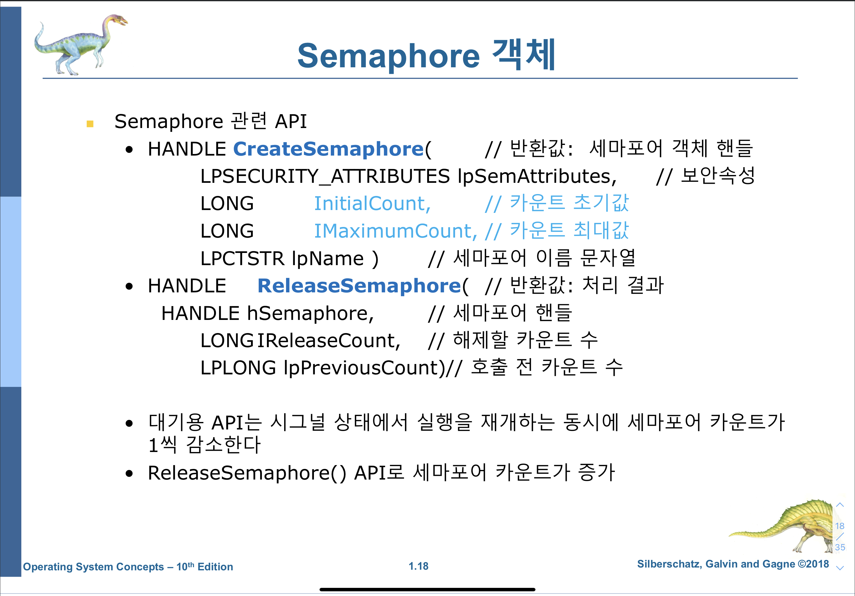 윈도 API의 WaitForSingleObject()는 OS 세마포어의 Wait()과 같은 기능을 하고
