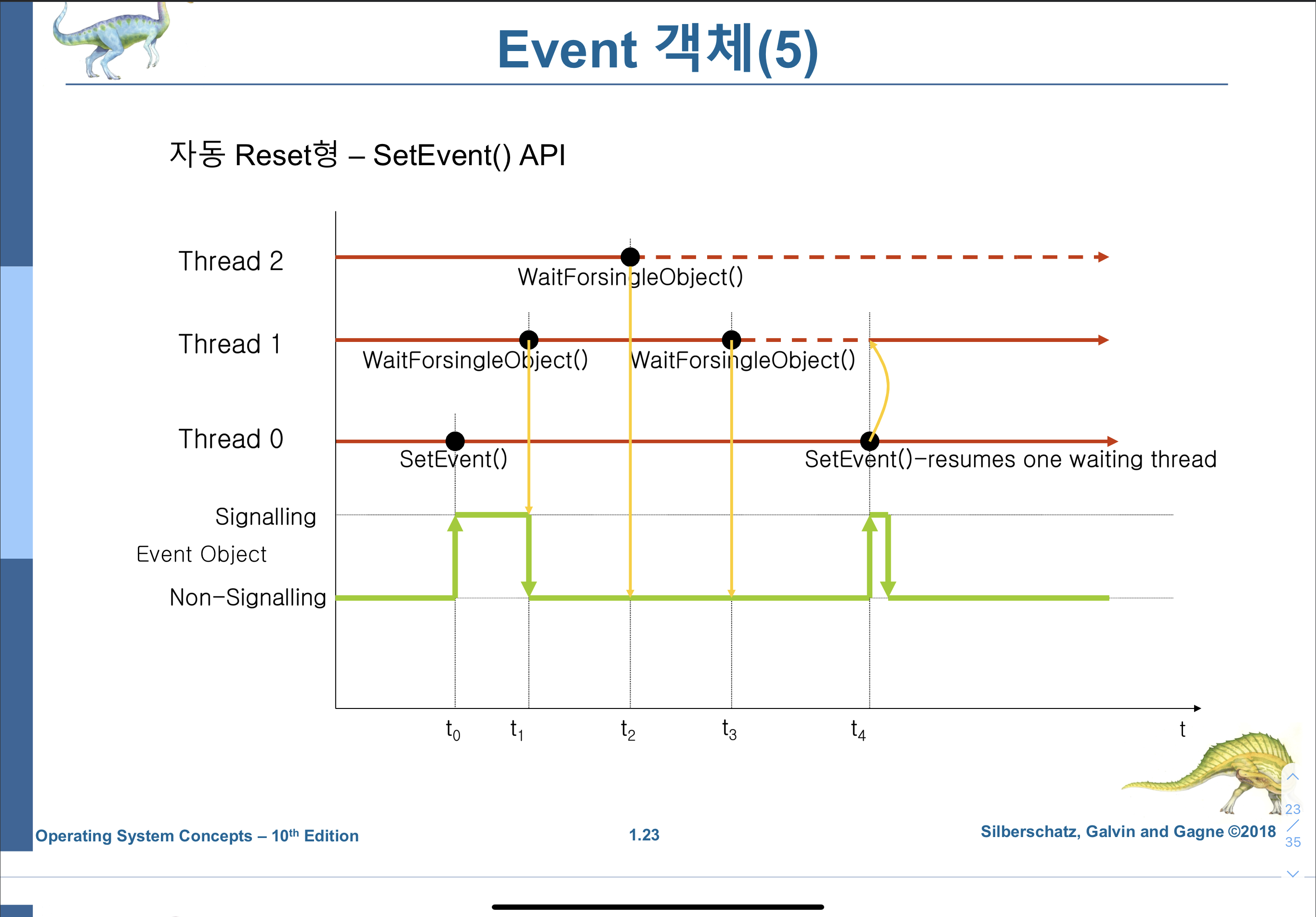 3. Event: 다른 스레드에 이벤트를 통지하여 객체의 시그널/비 시그널 상태를 자유롭게 제어