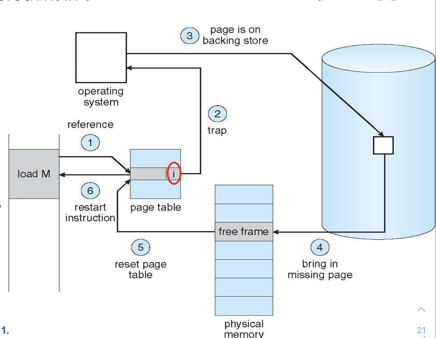 4. 운영체제는 참조된 page를 디스크에서 메모리로 로드한다. 이때 I/O 서비스에게 cpu를 뺏긴다 (kernel mode)