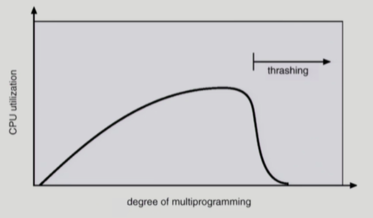 2. Swapping(I/O) 작업이 증가하여 CPU 효율성(Utilization)이 감소한다.