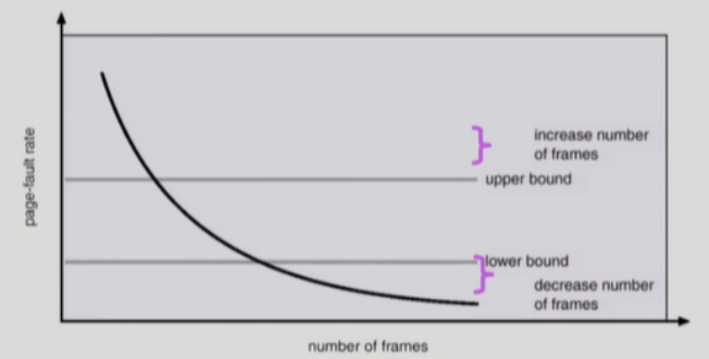 PFF는 page fault의 상한 값과 하한 값을 두고, page fault rate가 상한 값을 넘으면 frame을 더 할당하고, 하한 값보다 낮아지면 할당된 frame 수를 줄이는 방법이다.