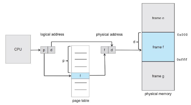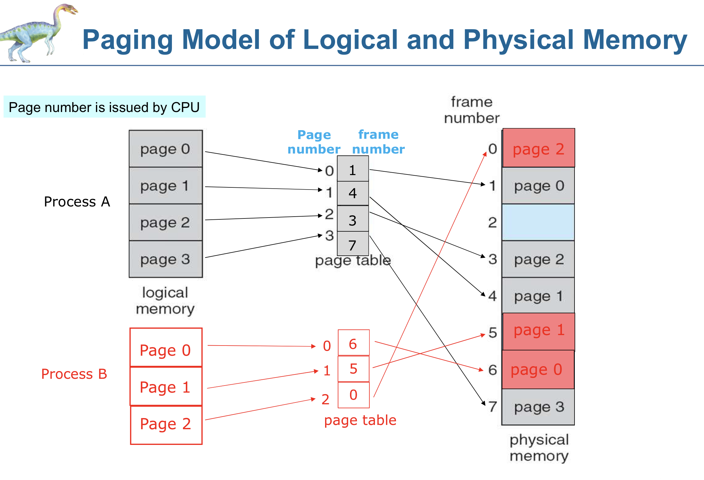위 그림처럼 일정한 크기의 프레임들이 page table을 통해서 물리적 메모리에 알맞은 위치에 할당된다.